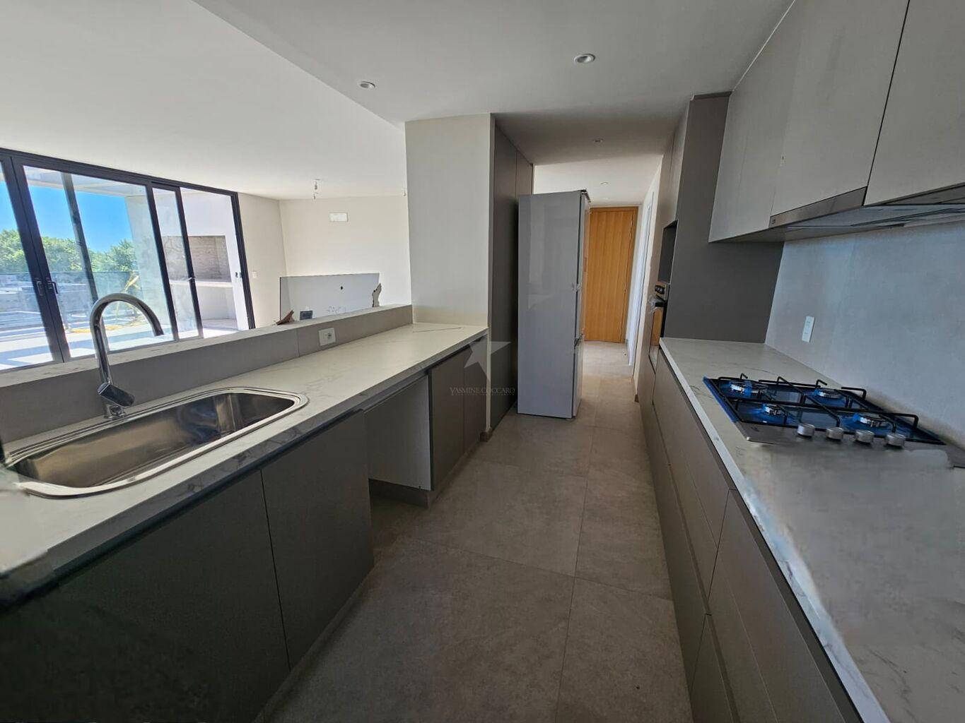 Cocina abierta , se entrega con anafe, campana, horno empotrado, heladera y lavavajillas . Todo con aire acondicionado.